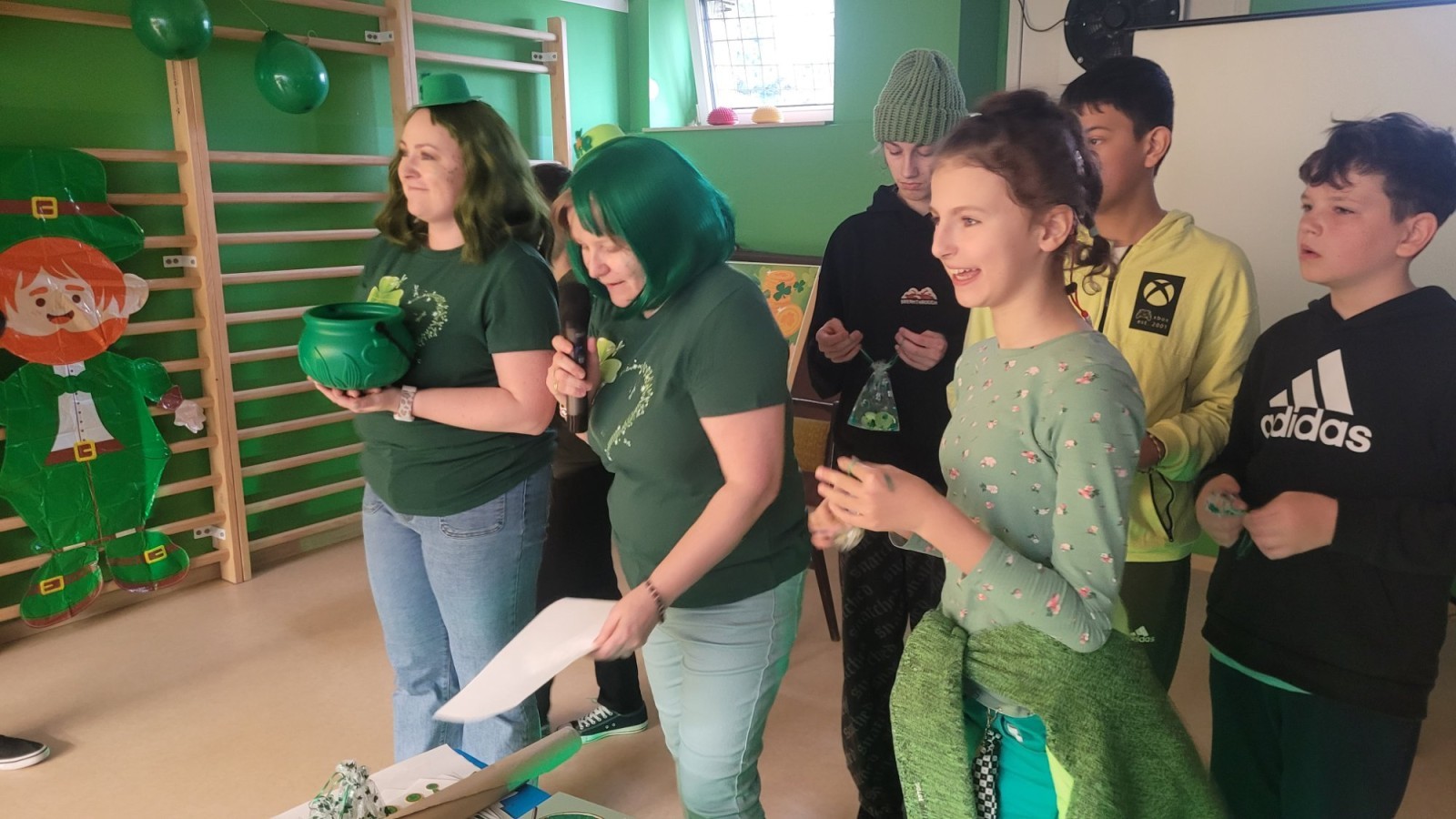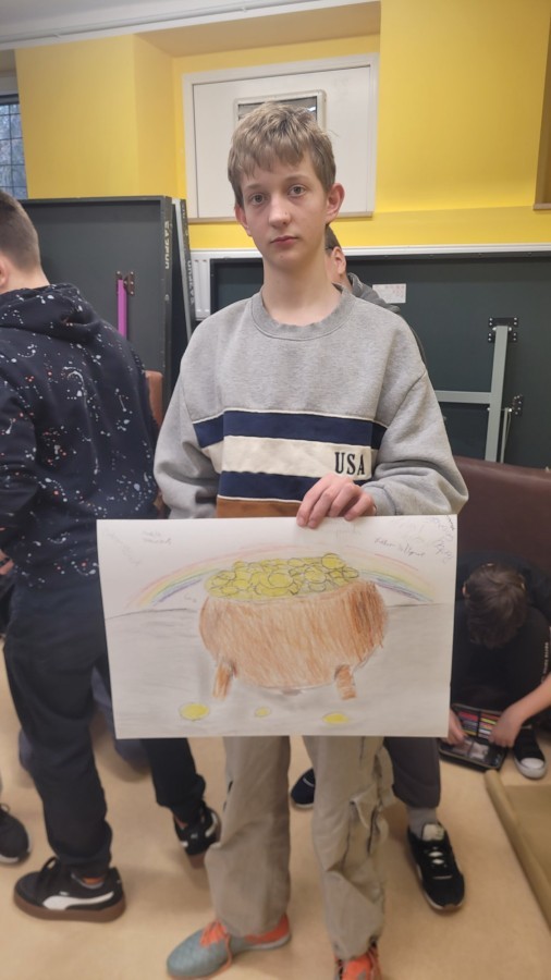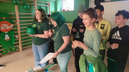 Jak co roku 17 marca w naszej szkole odbyły się radosne obchody Dnia Świętego Patryka, które wprowadziły wszystkich w wyjątkowy, irlandzki klimat. Uczniowie oraz nauczyciele ubrali się na zielono, a szkolna sala gimnastyczna została udekorowana koniczynkami i innymi symbolami związanymi z Irlandią. Podczas wydarzenia uczniowie mieli okazję poznać historię i tradycje związane z tym świętem, biorąc udział w krótkich prezentacjach oraz quizach. Nie zabrakło również wspólnej zabawy – konkursów plastycznych nawiązujących do symboli tego święta.