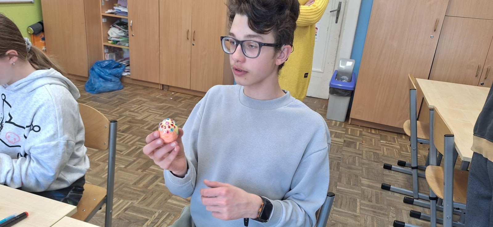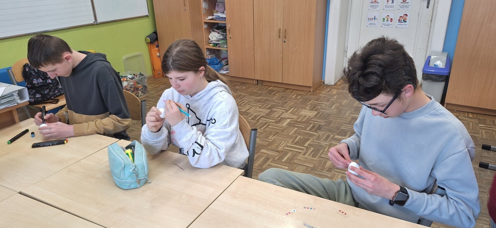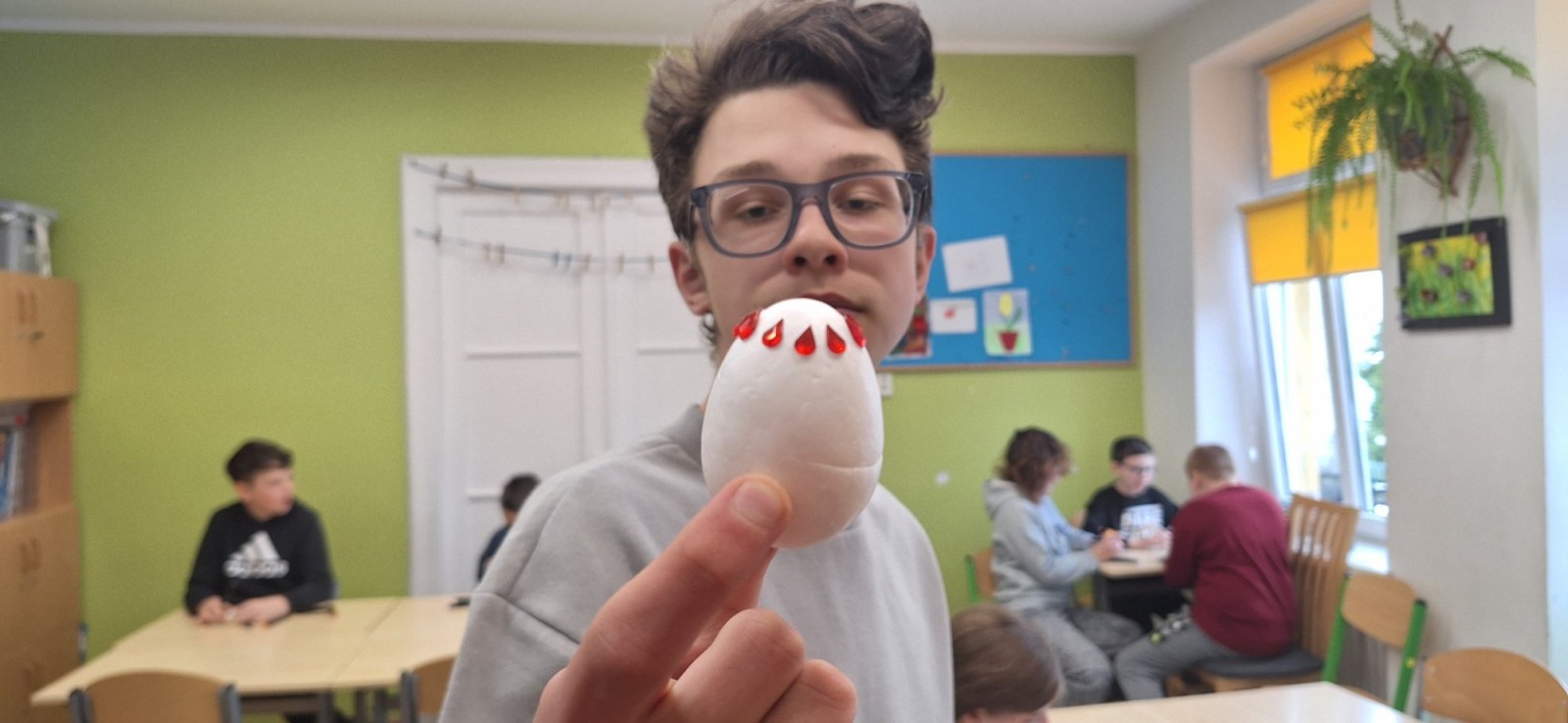 W świetlicy szkolnej zrobiło się ostatnio wyjątkowo kolorowo i twórczo. Wszystko za sprawą warsztatów wielkanocnych, podczas których uczniowie mieli okazję ozdabiać styropianowe jajka według własnych pomysłów.