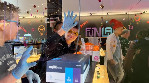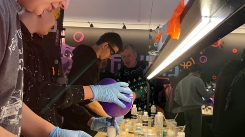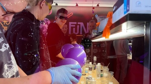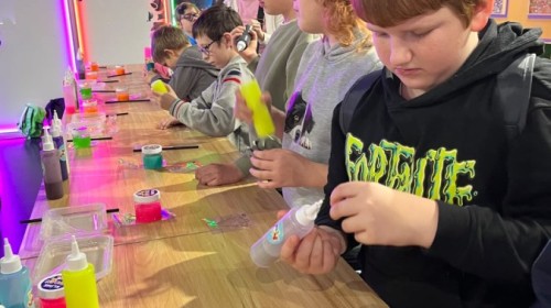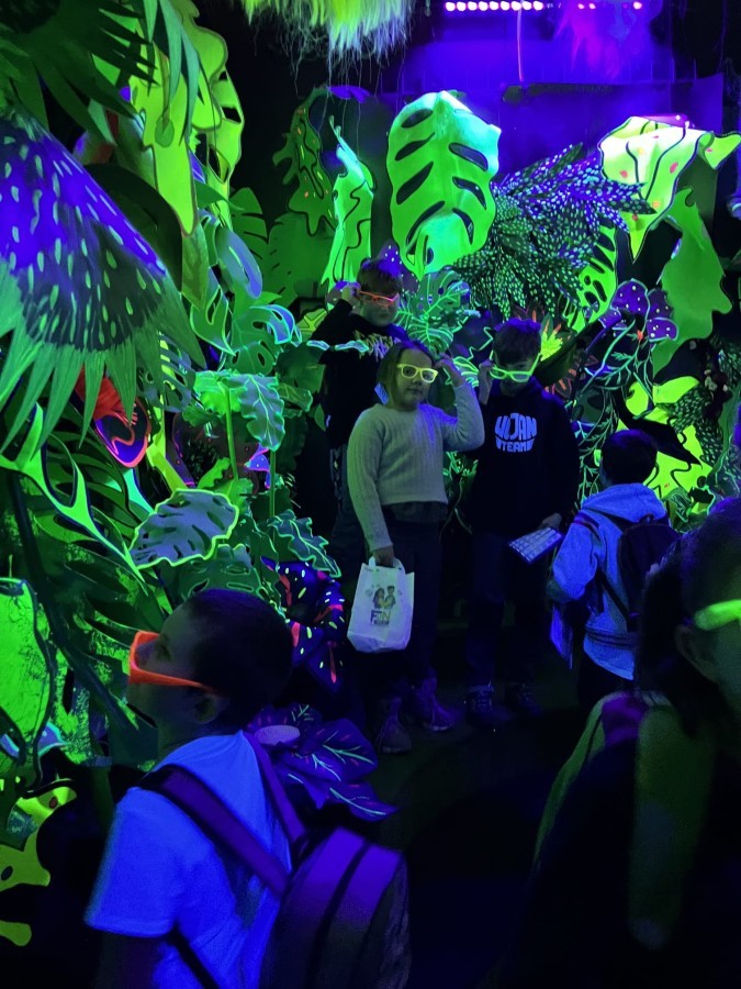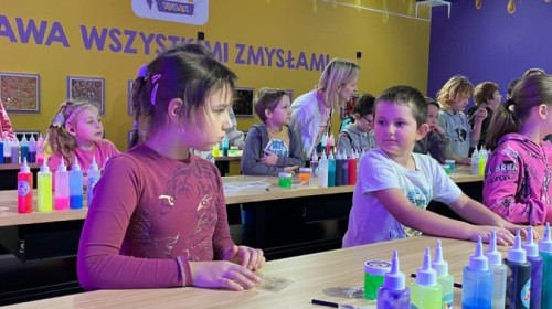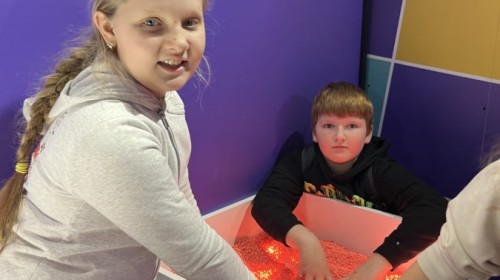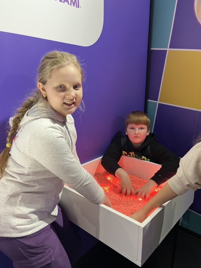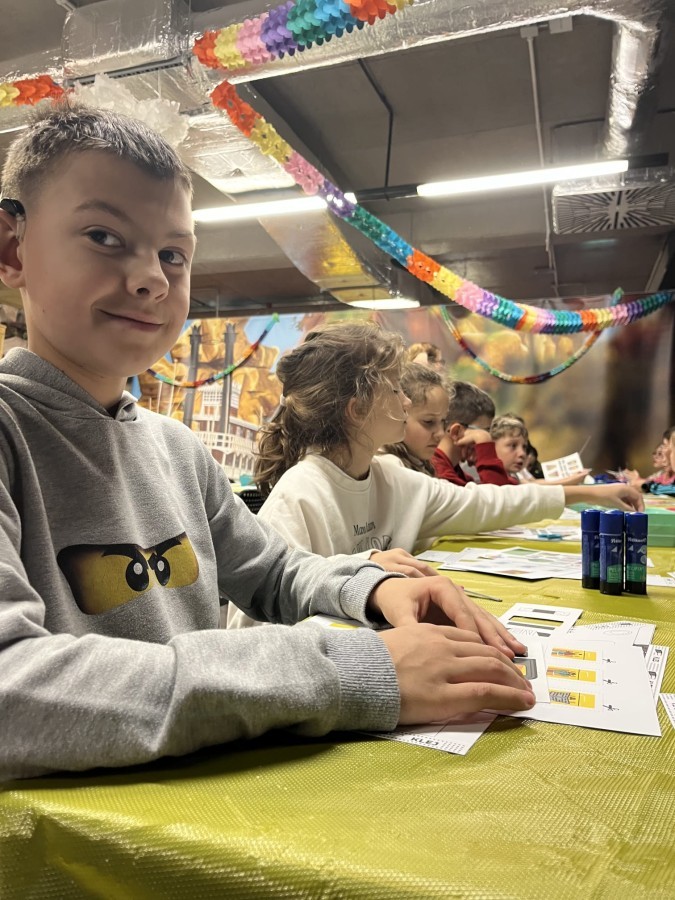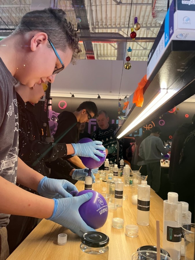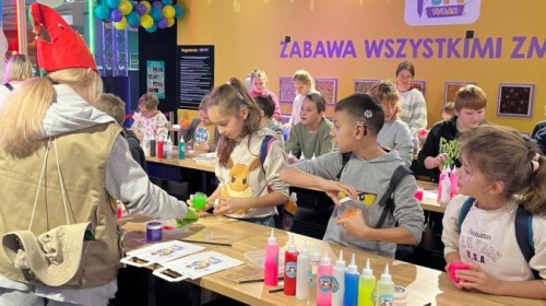 Kolejnym punktem programu był efektowny pokaz światła, który zachwycił uczestników grą kolorów, form i efektów wizualnych. Następnie odbyły się warsztaty robienia slime, podczas których każdy mógł własnoręcznie przygotować kolorową masę, rozwijając przy tym kreatywność i zdolności manualne.