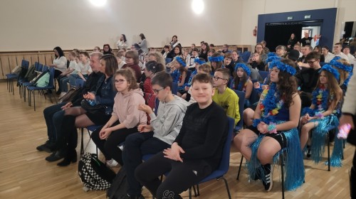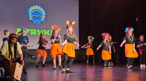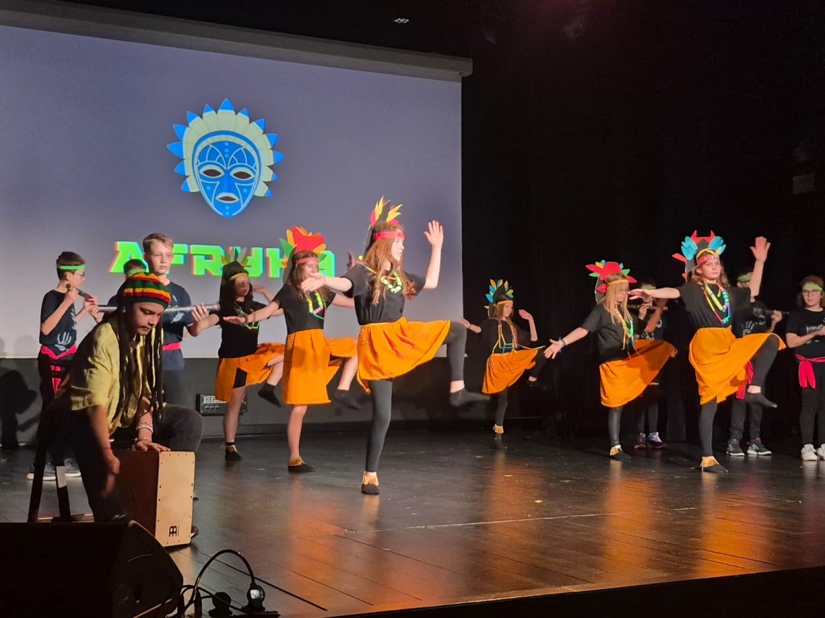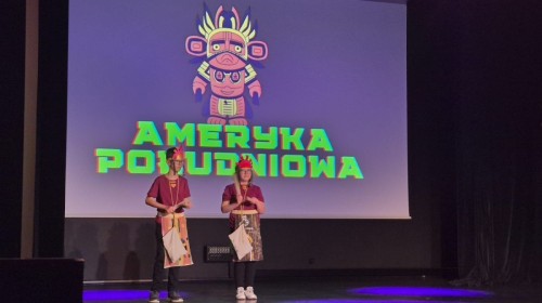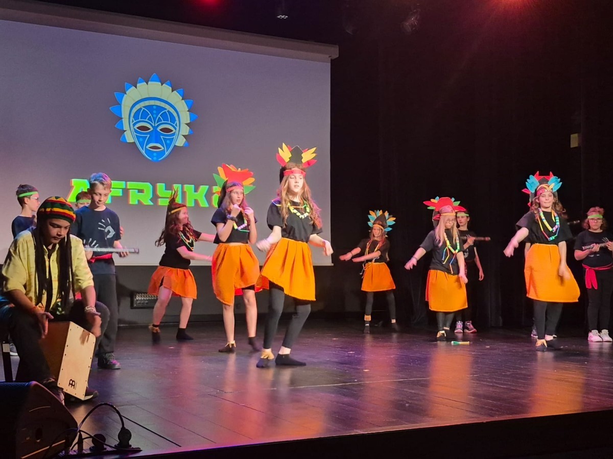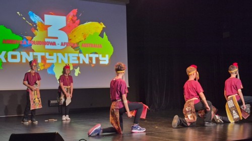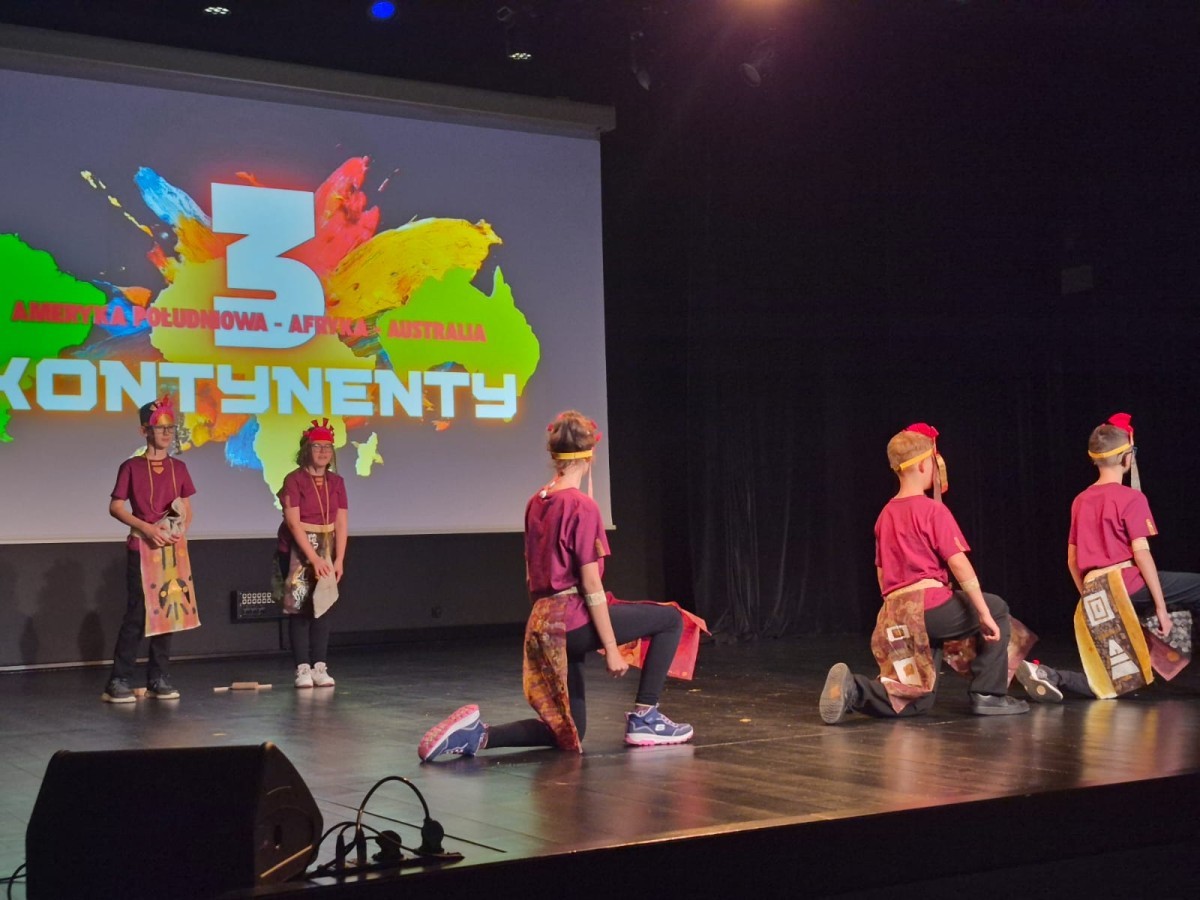 Uczniowie naszej szkoły przygotowali wyjątkowy program artystyczny, w którym zabrali publiczność w podróż przez ,,Trzy Kontynenty,, (i jeszcze dalej ;). Każda część występu była pełna energii i radości - młodzi artyści zaprezentowali żywiołowe tańce w kolorowych kostiumach, oddających charakter poszczególnych regionów świata. Publiczność z entuzjazmem reagowała na dynamiczne układy choreograficzne oraz zaangażowanie uczniów, którzy z dumą prezentowali swoje umiejętności sceniczne.